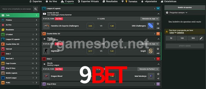 O 9Bet oferece uma grande seleção de opções de apostas em e-sports com probabilidades competitivas